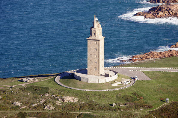 La Torre de Hércules es una torre y faro situado en la península de la ciudad de La Coruña, en Galicia (España). Su altura total es de 57 m de altura,1 2 sobre una colina, y data del siglo I. Tiene el privilegio de ser el único faro romano y el más antiguo en funcionamiento del mundo. Es el tercer faro en altura de España, por detrás del Faro de Maspalomas (60 msnm), y del Faro de Chipiona (62 msnm). El 27 de junio de 2009 fue declarado Patrimonio de la Humanidad por la Unesco.